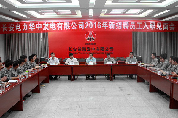 7月20日,公司2016年新員工入職見面會在長安益陽發(fā)電有限公司五樓會議室召開,公司執(zhí)行董事、總經理兼益陽公司董事長李寧,益陽公司總經理邱亦豐、黨委書記黃瑩鰲、華中