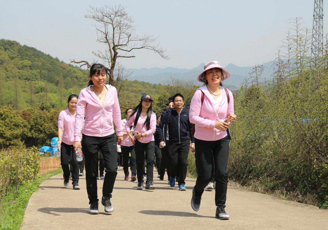 授旗后,“挑戰者們”已經迫不及待的站在起跑線上了,開始爬山啦!大家個個英姿颯爽、意氣風發,朝著今天的終極挑戰“紫和寺”奮力前進。前幾日的陰雨連綿導致山間小路有些濕滑,團青們一路相互攙扶,相互鼓勵,處處體現著團結的力量。