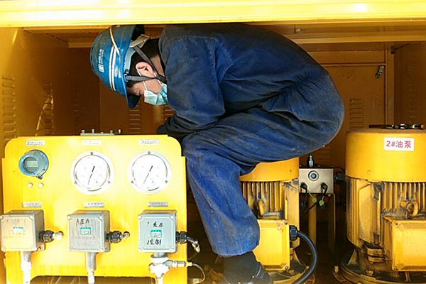 唐匯軍在引風機油站檢修