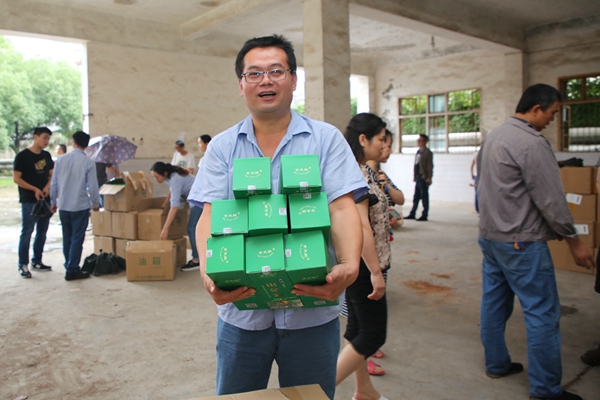 當日下午5點,各部門組織人員有序領取有機山茶油。盡管現場人員眾多,但場面忙而不亂,有條不紊。不到一個小時,認購的672斤山茶油全部發放到位,總銷售收入達到53424元,為廣西大化村村民帶去直接經濟收益,更為廣西大化村的脫貧攻堅奉獻了自己的愛心。