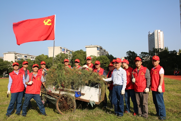 活動當日,該公司四大支部黨員身穿紅色志愿服,頭戴小紅帽提前到達,領取了除草工具,跟隨高舉的黨旗來到小區足球場,來到所劃分的責任區域,開始進行全面的雜草“大清理”。頂著秋日的暖陽,大家挽起袖子分頭行動。他們分工明確、配合默契,鏟草、拔草、收集、放置各項工作進行的井然有序。正是秋日里難得的一個艷陽天,天氣有些炎熱,但是黨員志愿者們個個精神抖擻、干勁十足。每個支部負責一塊區域,各支部黨員你追我趕,誰也不愿落在后面,充分體現出眾志成城的團隊精神。近兩個小時的勞動,清除的雜草裝滿了一車又一車,參加活動的黨員已經滿臉大汗,有的衣服都已汗濕,各自的責任區開始呈現出了一片整潔的景象,足球場草坪的面貌煥然一新。眼前美麗的“風景線”讓大家頓時覺得心曠神怡,感覺疲憊的同時也享受到勞動帶來的快樂,一種發自內心的充實油然而生。