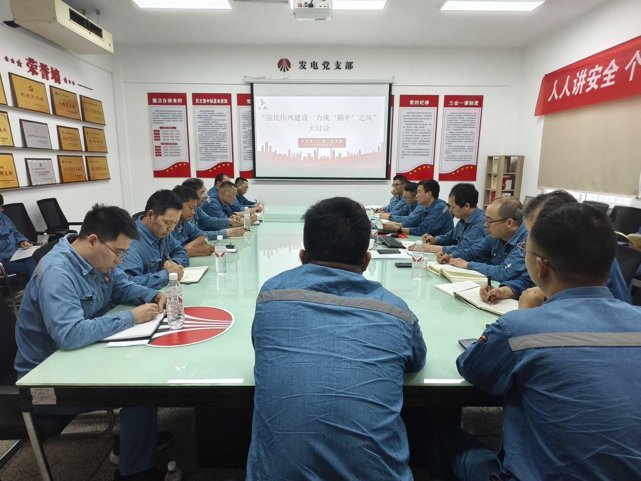 深學明紀,筑牢思想根基。發電第一黨支部采用“領學解讀+交流討論”形式,組織全體黨員深入研讀中央八項規定及其實施細則,學習《習近平關于加強黨的作風建設論述摘編》,引導黨員從思想根源樹牢紀律意識。同時,將警示教育作為重要抓手,組織學習違規案例、觀看《反腐為了人民》電視專題片,用“身邊事”警醒“身邊人”,引導全員以案為鏡、自警自省,時刻緊繃紀律之弦,嚴守行為紅線。