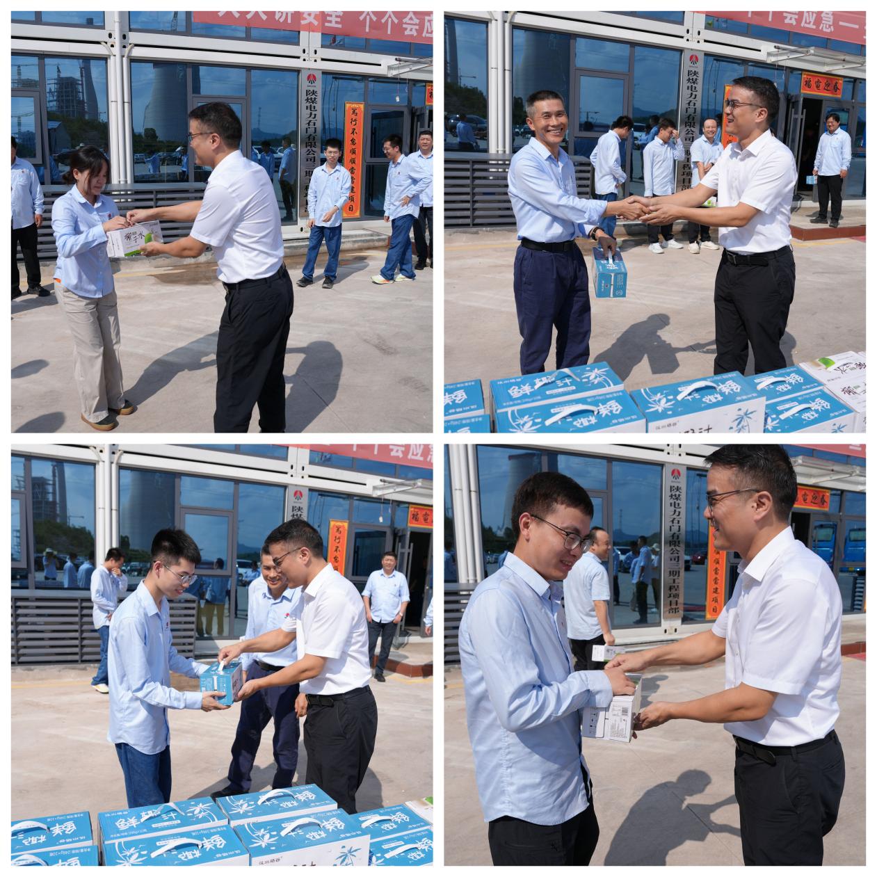 8月7日,華中公司黨委委員嚴奉國到陜煤石門發電公司慰問一線員工。八月來,氣溫持續攀升,溫度連續五日達到35攝氏度以上,酷熱難耐。為了確保一線員工的身體健康,嚴奉國代表華中公司黨委,帶著清涼飲品和防暑用品,前往陜煤石門公司的一期、二期集控室以及三期項目的施工現場,與員工們親切交談,了解他們的工作狀況和生活需求,并鼓勵大家繼續發揚吃苦耐勞的精神,共同完成各項任務。